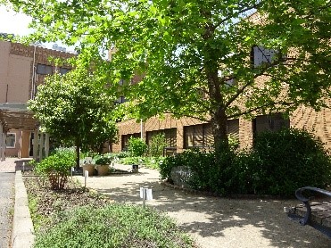 平成25年(2013)5月に開園した薬草園は、今年9周年を迎えました。シンボルツリーであるヒポクラテスの木(スズカケの木)の、見事な枝振りをはじめ、110種類におよぶ薬草・ハーブが四季折々に華やかに彩り、多くの患者さんと市民の皆さんの憩いの場となっています。