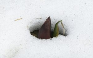 トピックス雪の中から顔を出し、今が見頃のザゼンソウ