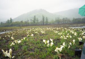 ① 行者ニンニク(亜高山の水湿地に群生、白色小花で株全体にニンニク臭、修験者の強壮食材)
