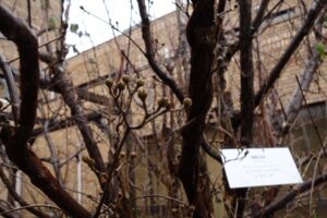 薬草園でも例年このような佇まいが見られますが、今年は2月下旬に寒波が襲来し、かなりの積雪があって蕾の状態です。それでも冬の間ひっそりと息をひそめていた草木が、芽吹き始めると思わず顔がほころびます。