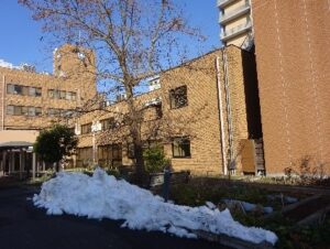 爽やかな青空のもと、小浜病院の周囲を華やかに彩る満開の桜。