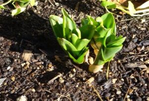 冬籠もりの虫たちが土の中から顔を覗かせ、降り注ぐやわらかな陽射しや頬を撫でる優しい風に、待ちわびた春の到来を感じます。冬の間ひっそりと息をひそめていた薬草園でも、チューリップが芽生えています。園芸ボランティア・すみれの会による雪囲いの取り外しや枯れ枝の剪定など、本格的な春を迎える準備作業が始まります。