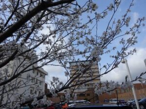 気象情報では、2月1日から毎日の最高気温を足して合計が600℃に達すると、桜が開花すると言われています。今年の冬は降雪が少なく比較的暖冬でしたが、3月後半は厳しい冷え込みにより気温が上がらず、桜前線の北上は昨年より少し遅くなりました。
