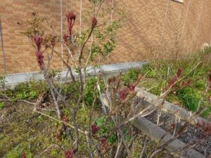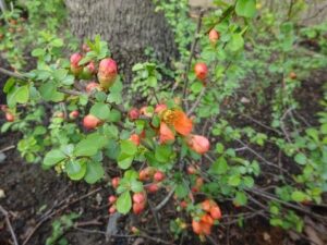 ⑥ クサボケ(日本特産種、朱赤色の花で、秋に黄熟する果実酒が美味しい)