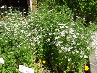③ コエンドロ(淡桃白色の小花、花と果実には芳香、葉はカメムシ臭い“パクチー”)