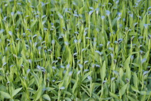 ④ アマ(清楚な青花で一日花、茎の皮が繊維素材、タネから搾る油が“亜麻仁油”)