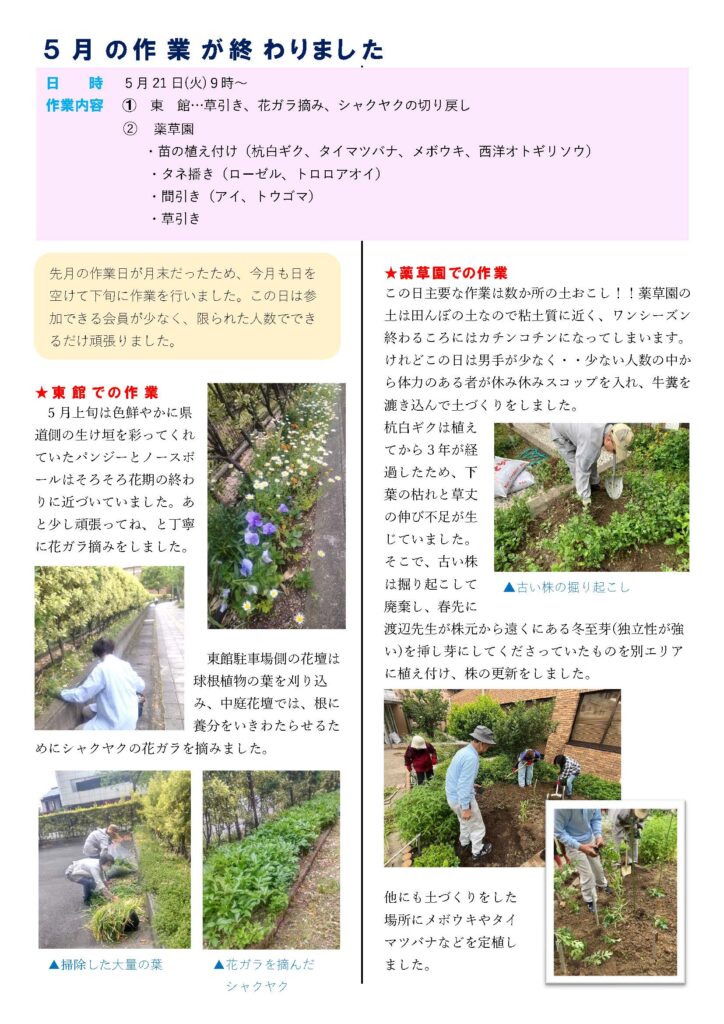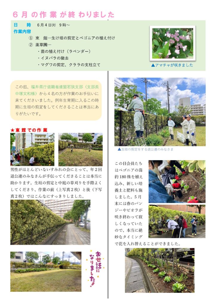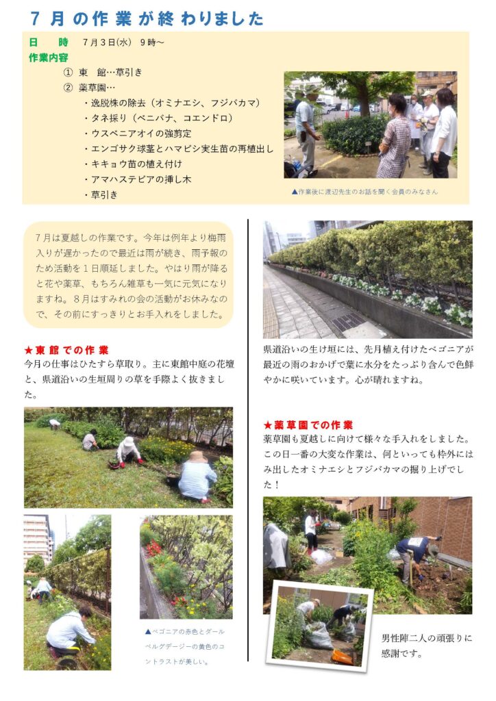 園芸ボランティア「すみれの会」からのお知らせ