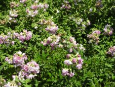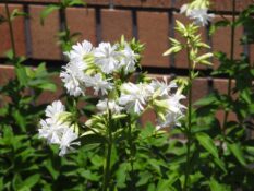 サボンソウ(Saponaria officinalis)は、ヨーロッパから中央アジア原産の多年草です。日本へは明治初期に伝えられ、花が美しいため花壇用宿根草としてもよく植えられています。草丈は30~80cm、根茎が横走し株立ちとなって茂ります。初夏から夏にかけて、枝端に径2~3cmの5弁花を咲かせます。花色は淡紅または白色ですが、稀に紅色花や八重咲き品種もあります。一見ナデシコに似ていますが、花弁に切れ込みのないのが特徴です。耐寒性があって、秋または春に株分け苗を植えれば、あまり手をかけずに毎年奇麗な花を咲かせてくれます。よく結実するので、種子繁殖でも容易に殖やせます。